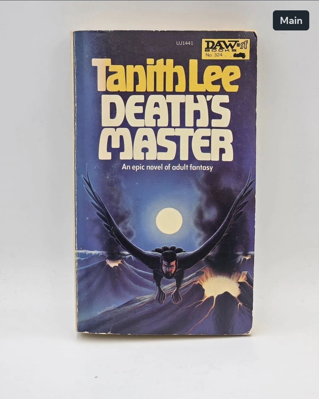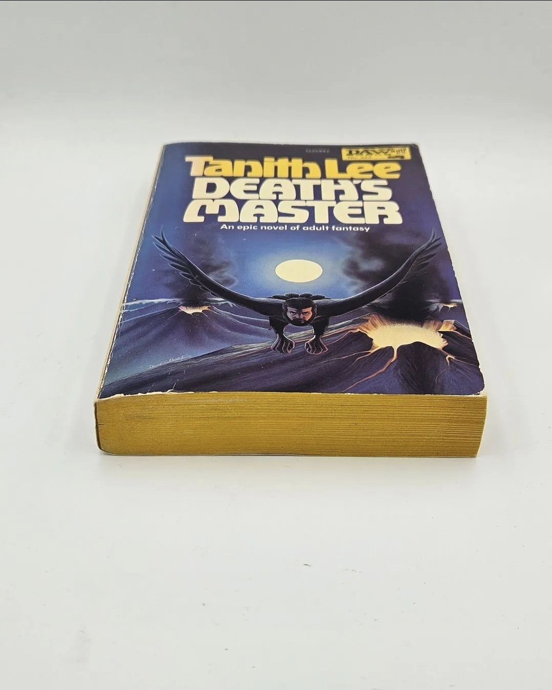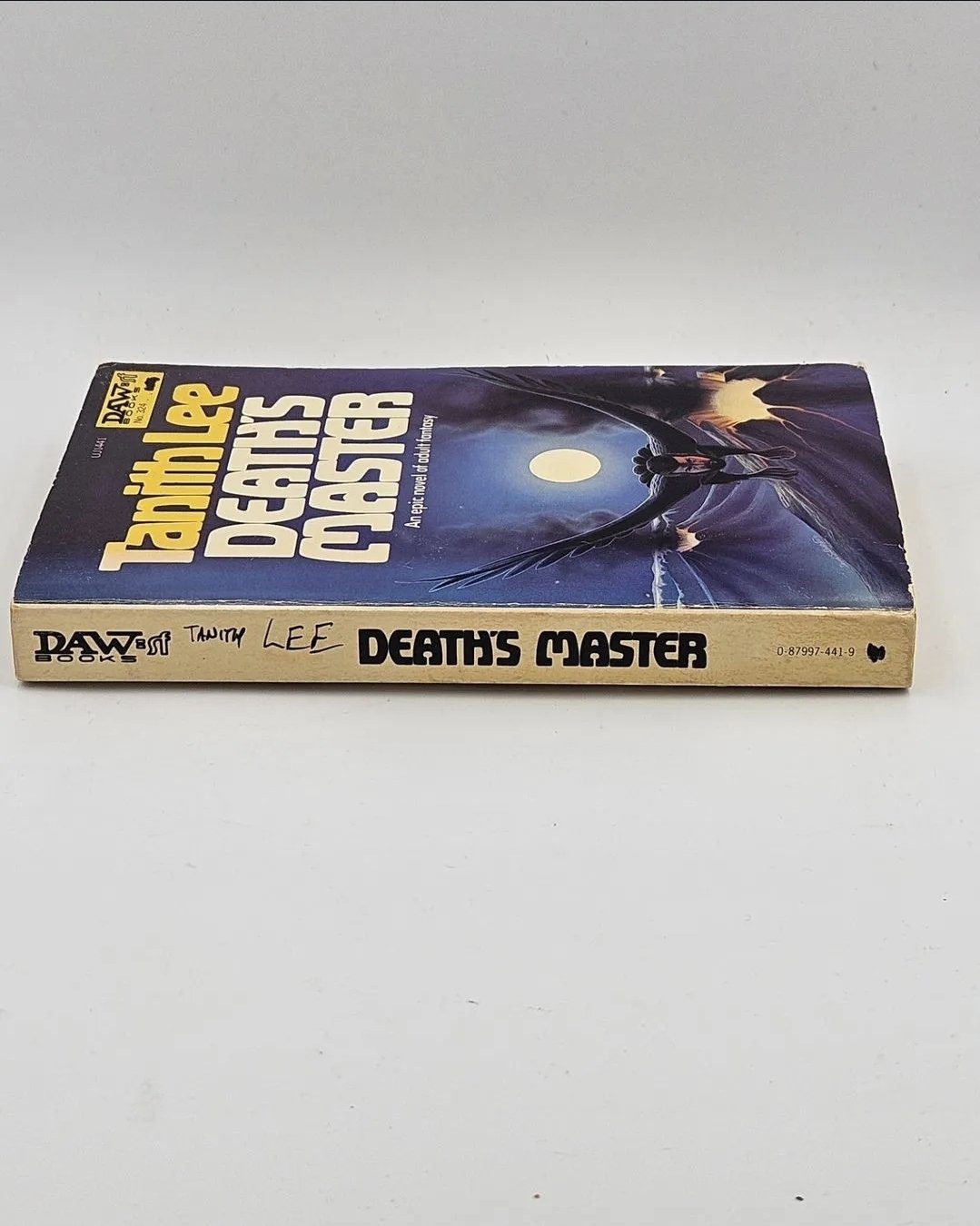 Add this first printing of Death’s Master to your collection by acclaimed author Tanith Lee. Originally published in February 1979, this vintage paperback is part of the DAW original series and showcases an epic tale of dark fantasy, intrigue, and power.