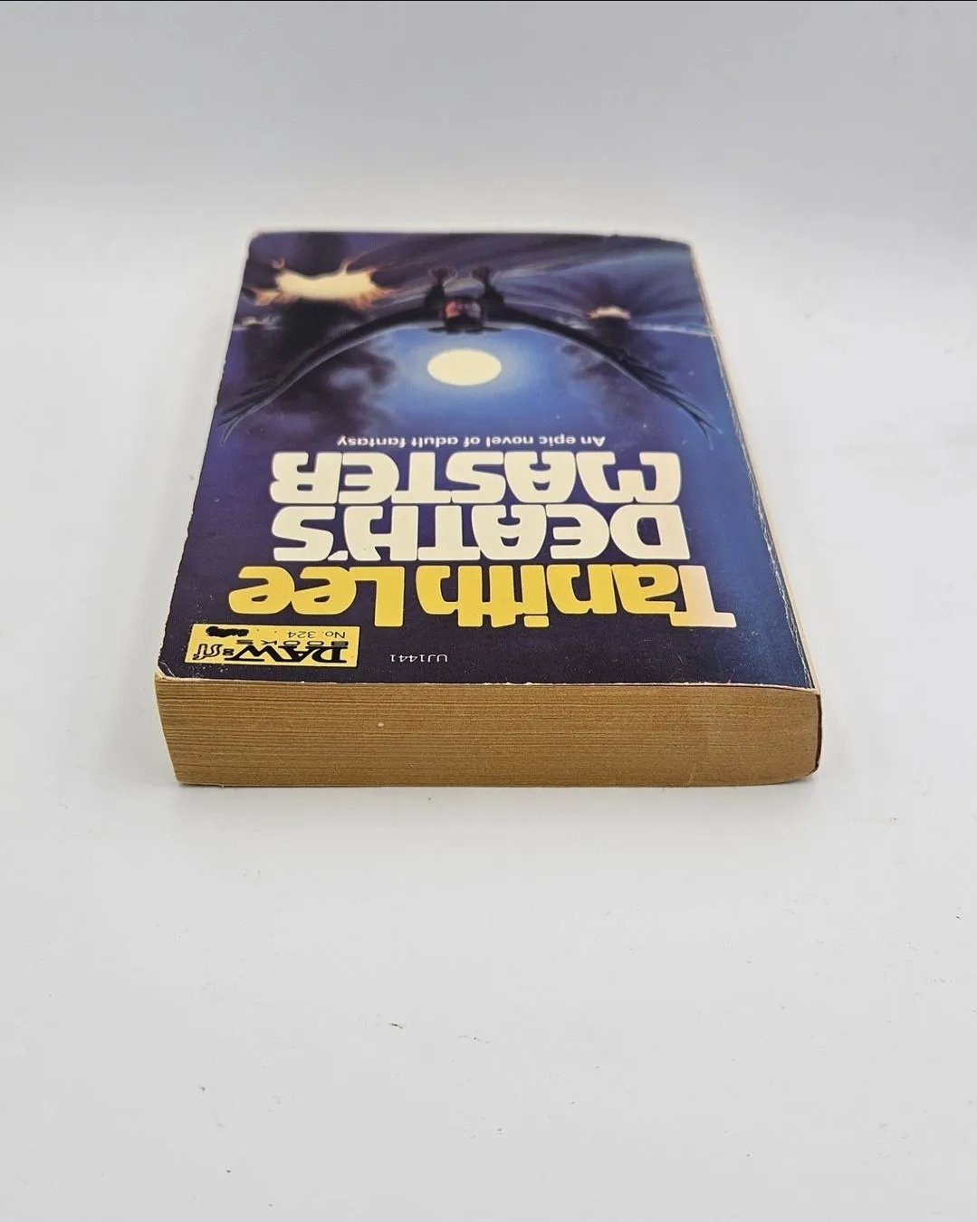 Add this first printing of Death’s Master to your collection by acclaimed author Tanith Lee. Originally published in February 1979, this vintage paperback is part of the DAW original series and showcases an epic tale of dark fantasy, intrigue, and power. Condition: Cover: Slight wear around the edges, but overall vibrant and intact. The cover…